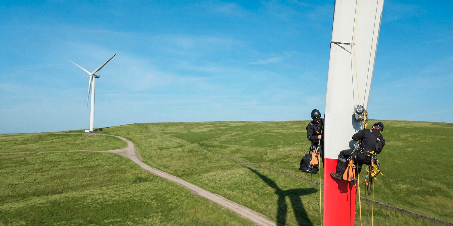 Work is performed using rope access, platforms, or other work-at-height methods, in accordance with procedures defined by the wind turbine manufacturer and the applicable standards for each project.